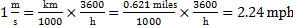 Given that 1 km = 0.621 miles, how many mph (= miles per hour = miles/h)